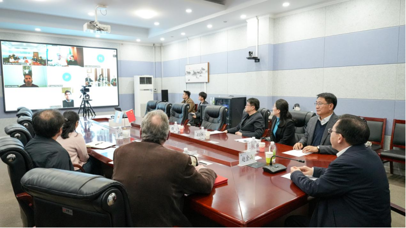4月9日,青岛农业大学与阿根廷布宜诺斯艾利斯省农业发展部、布宜诺斯艾利斯大学农学院在专家楼117会议室召开视频会议,共同洽谈国际合作,签署农业发展合作备忘录。阿根廷布宜诺斯艾利斯省农业发展部部长Javier RODRÍGUEZ博士,布宜诺斯艾利斯大学农学院院长Adriana RODRÍGUEZ博士,青岛农业大学校长赵金山出席会议。学校教务处、国际合作交流处、草业学院相关负责人,阿根廷布宜诺斯艾利斯省农业发展部及布宜诺斯艾利斯大学农学院相关代表参加会议。会议由青岛农业大学草业学院教授German Spangenberg主持。