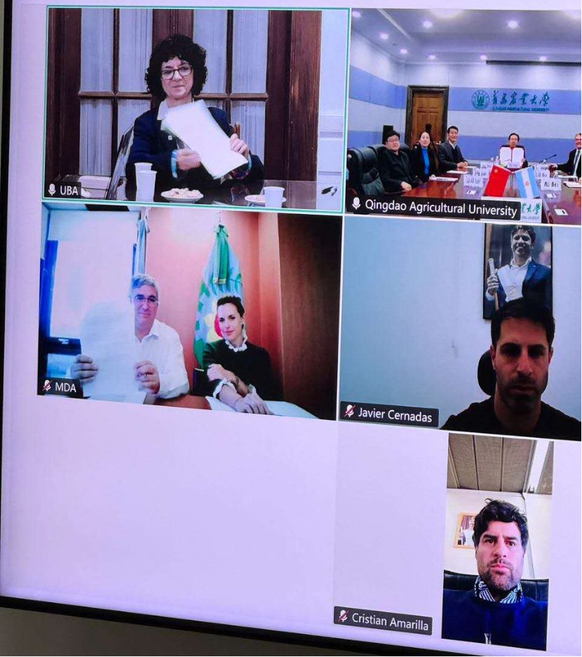 视频会议上,三方共同签署了《青岛农业大学—阿根廷布宜诺斯艾利斯省农业发展部—布宜诺斯艾利斯大学农学院农业发展合作备忘录》。该合作备忘录的签署,为深化三方在推动农业进步、促进技术创新、实现资源可持续管理和保护,以及推进可持续粮食体系、农业生产系统和草地生态系统建设等方面的共同愿景奠定了坚实基础。