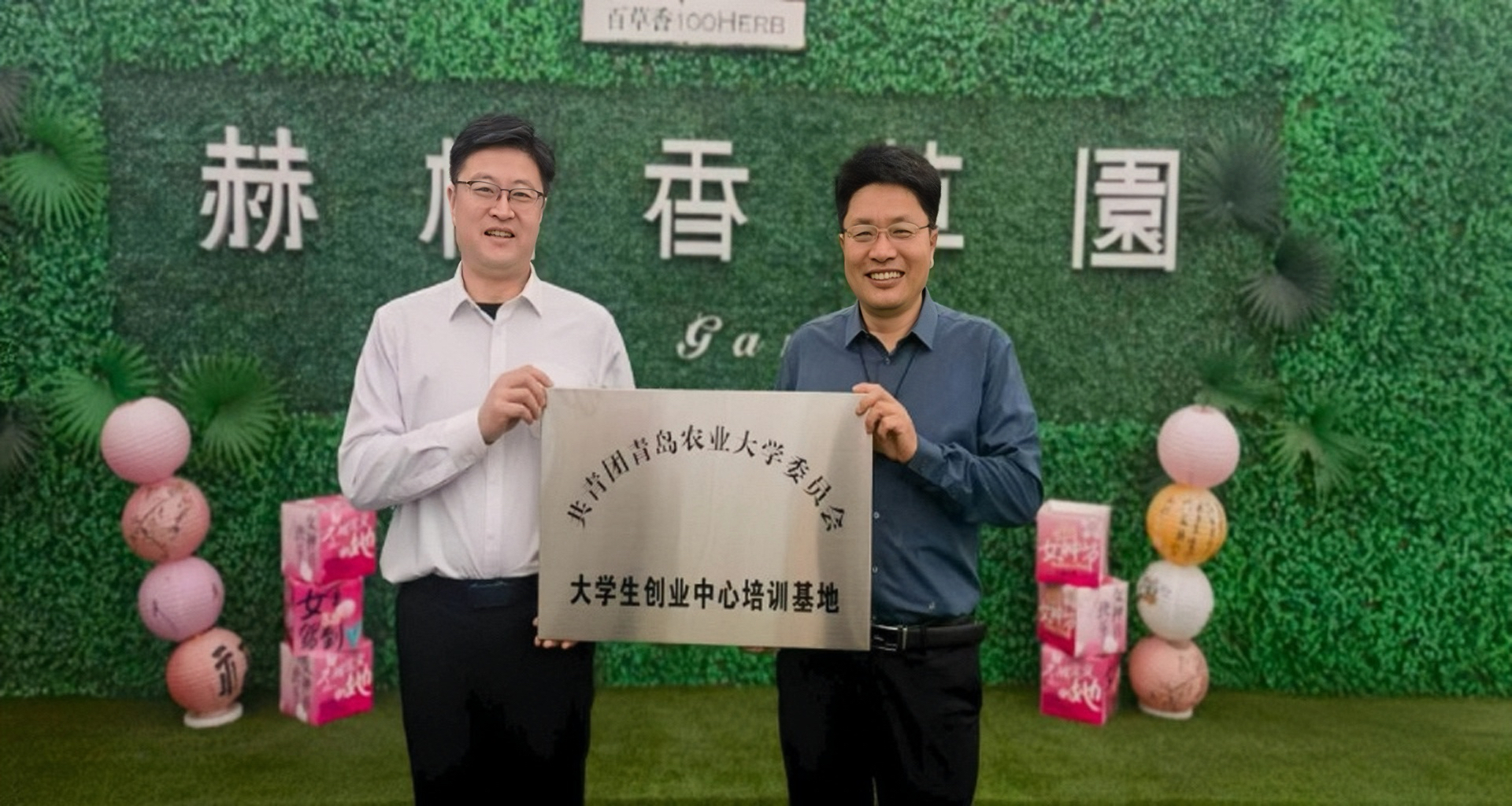 共建活动中,孙贝贝代表学院签署《大学生创业中心培训基地合作协议》,乔磊与李崇华共同为基地揭牌。根据协议,双方将围绕草业科学和草坪科学与工程专业的人才培养,在实践教学、创新创业教育、科研合作等方面开展深度合作,依托赫柏香草园丰富的香草资源和实践平台,为草业学子提供优质的创新创业实践环境。