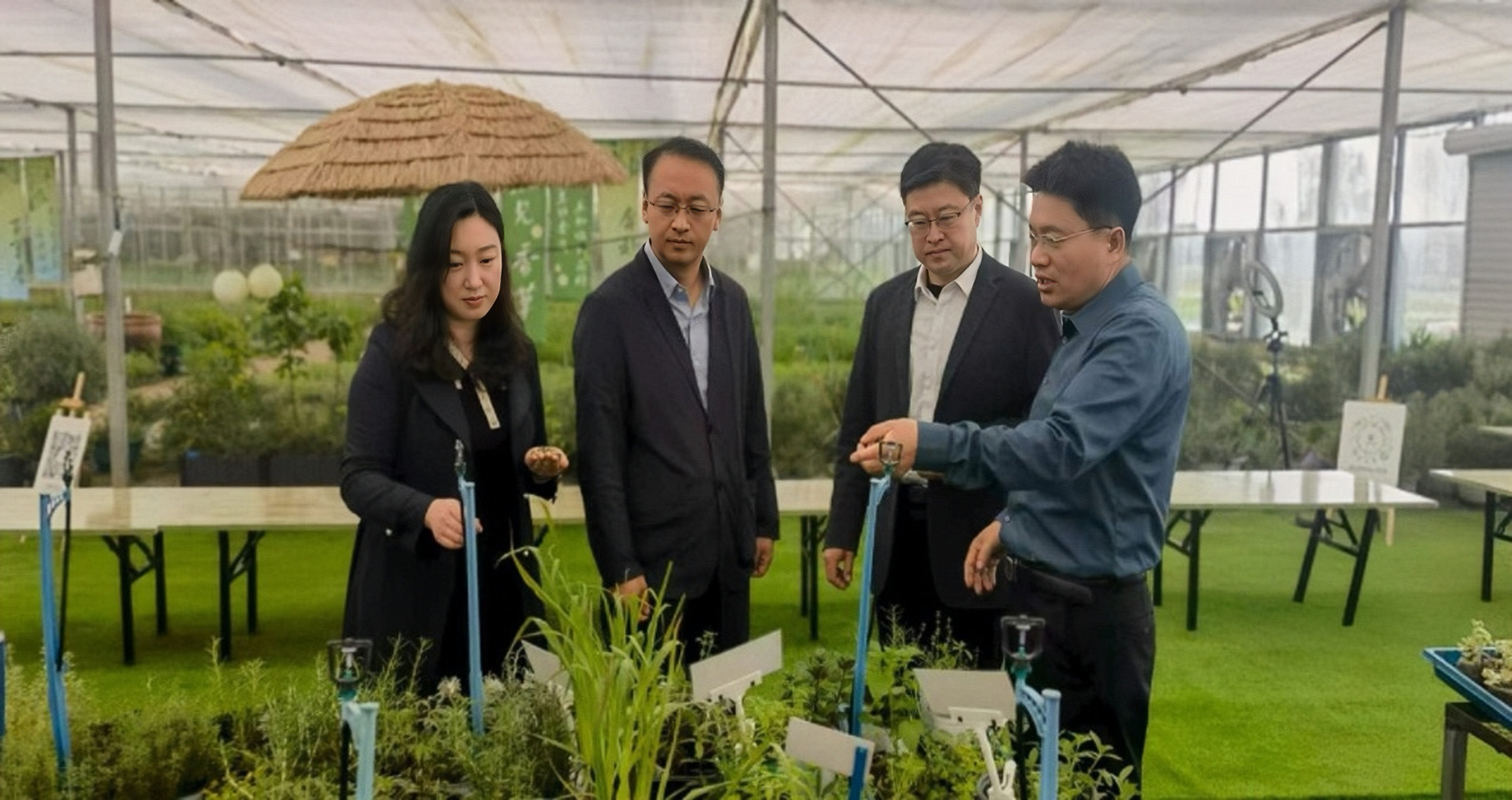 近日,青岛农业大学草业学院与赫柏香草园在即墨区周南村共同举行创新创业校企合作共建活动。草业学院党委书记乔磊,党委副书记、副院长孙贝贝,杨国锋教授,李长忠老师,赫柏香草园总经理李崇华等出席活动。