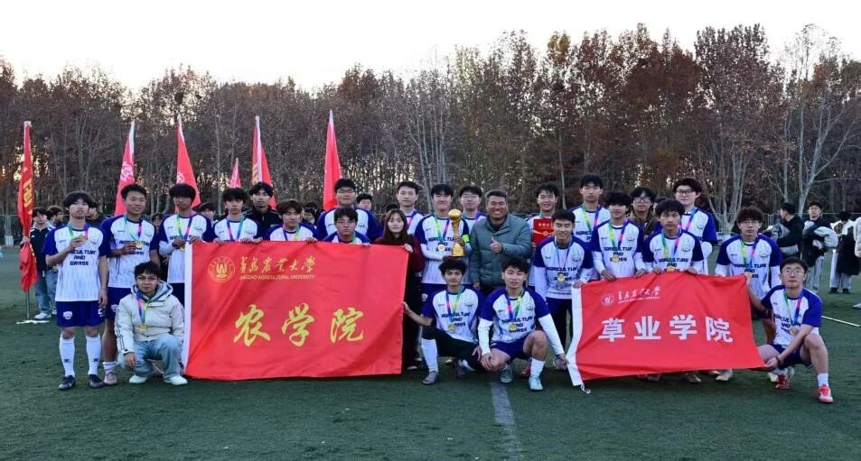 朔风卷地,寒意刺骨,却挡不住草业学子驰骋绿茵的热血豪情。11月21日,青岛农业大学 “青农杯”足球赛决赛在凛冽寒风中圆满落幕。由草业学院、农学院组建的联合代表队一路披荆斩棘,奋勇突围,最终在决赛中以 1:0 力克机电学院,成功捧起本届赛事冠军奖杯,用全胜战绩书写了校园足球的精彩篇章。