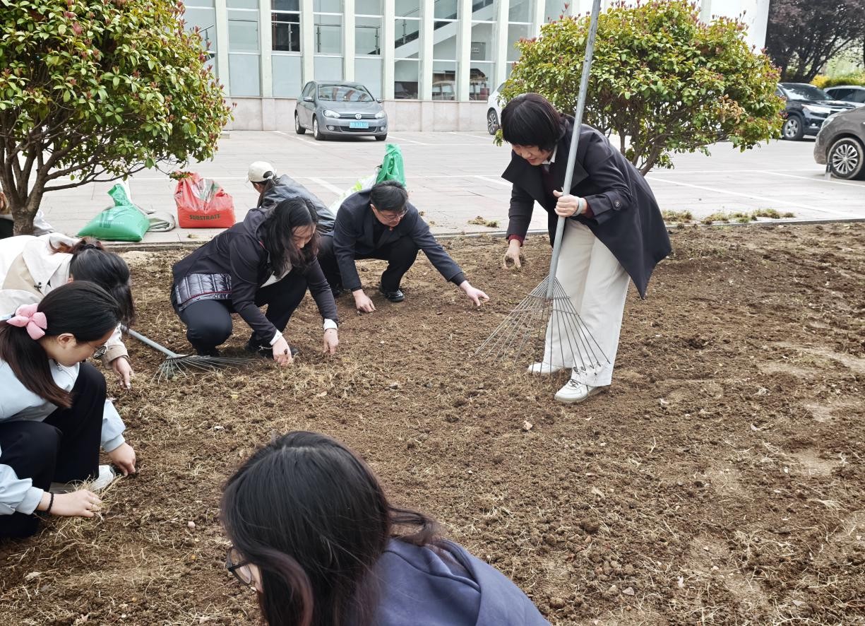 孙晓阳向同学们详细讲解了本次待翻新草坪的基本概况、生态价值以及后续养护规划,明确了核心工作内容与操作规范。他特别提醒同学们,“看似不起眼的草种,现在基本依赖进口,希望同学们深耕专业,为我国草种质资源保护和研发打牢坚实基础”。大家齐心协力、干劲十足,在团结协作中感受劳动的价值,在弯腰劳作中体悟艰苦奋斗的真谛,整个劳动场面井然有序、氛围热烈。